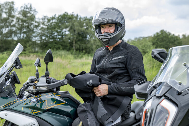 De optimale configuratie met twee afzonderlijk draagbare jassen, waarvan er één kan worden omgevormd tot een rugzak, is ontwikkeld voor rijders die alle omstandigheden willen trotseren.